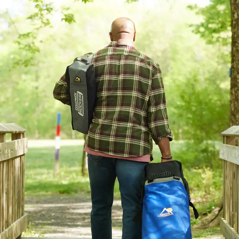 Effortlessly compact and ultra-portable, the GCI Outdoor ComPack Rocker™ is made to travel. The bucket-style seat offers a laid-back sitting position, while patented Torsion Rocking Technology™ creates a smooth rocking motion for hours of relaxation outdoors.