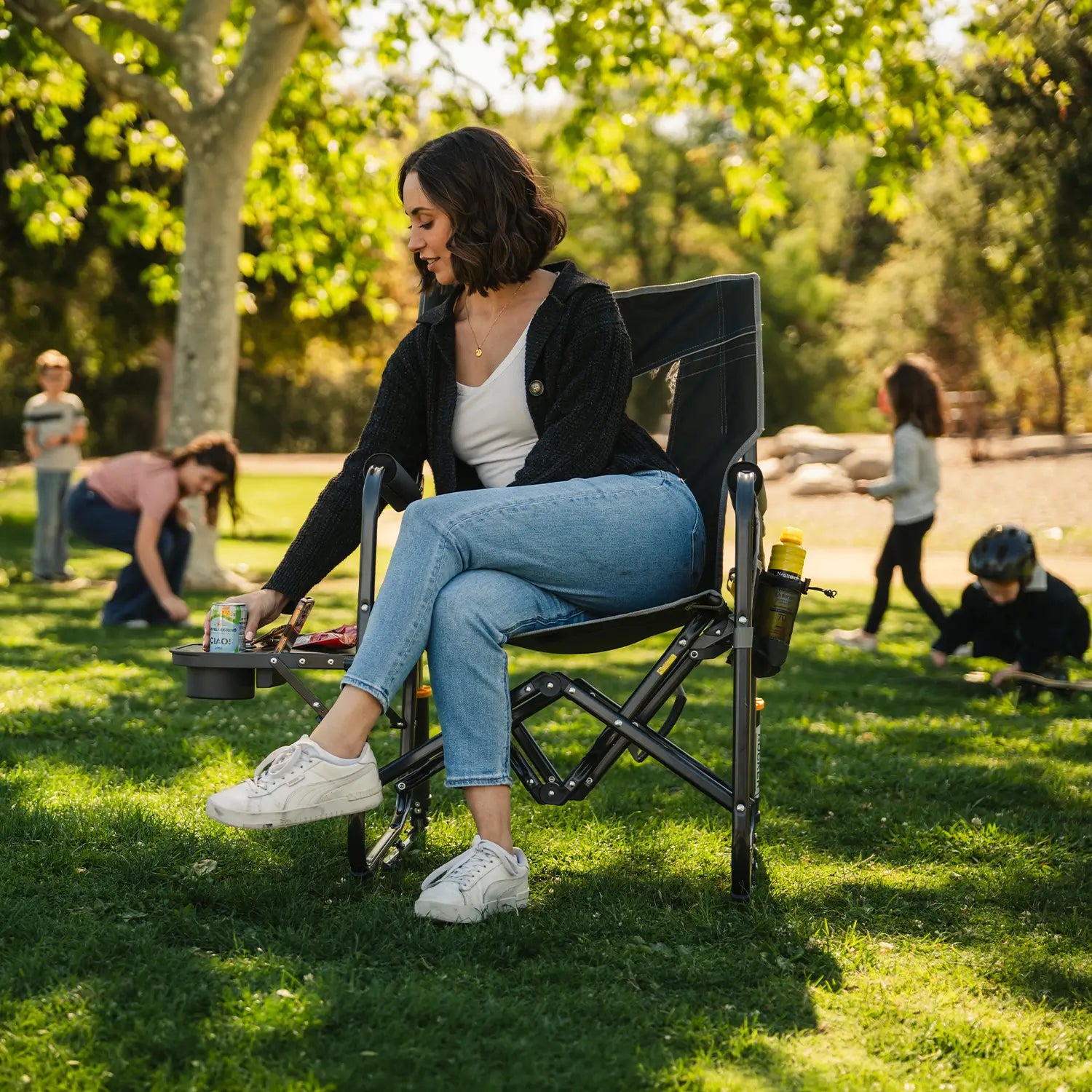 Elevate your outdoor adventures in comfort with the GCI Outdoor Stowaway Rocker™ with Side Table. Its compact fold-down design maximizes trunk space, while patented Spring-Action Rocking Technology™ delivers smooth rocking on grass, pavement, or patios. A built-in side table keeps drinks, snacks, and essentials within easy reach—adding extra convenience wherever you relax.