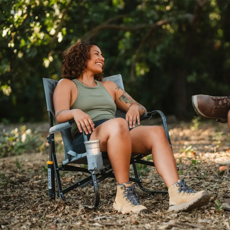 Feel the warmth, hear the crackle, and settle into the comfort of the GCI Outdoor FirePit Rocker™. With its low-profile design and patented Spring-Action Rocking Technology™, this chair provides a smooth rocking motion and a relaxing fireside experience.